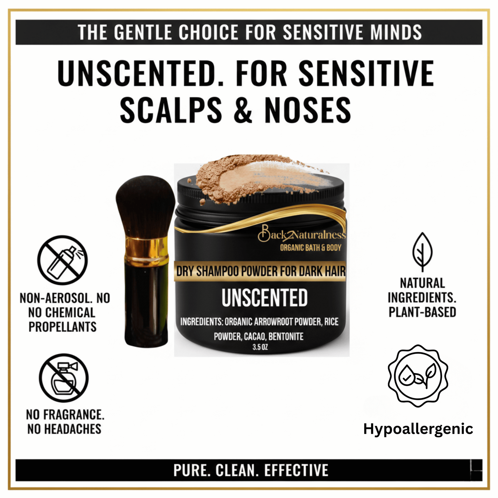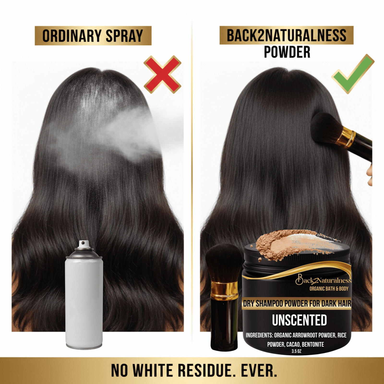 Order your Back2Naturalness Natural Organic Dry Shampoo Powder for Dark Hair today — you will be glad you made the switch to go Back2naturalness.
